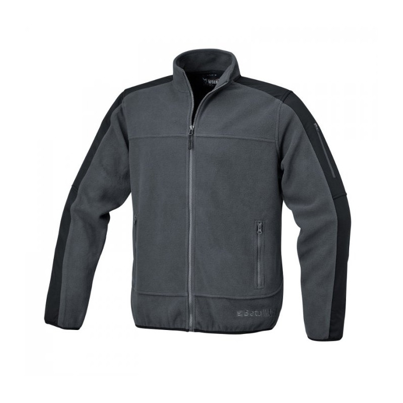 - Medžiaga: 100% poliesteris - Svoris: 280 g/m2 - Grafitinės ir juodos spalvos striukė - Poliesterio intarpai ant pečių ir rankovių - Rankovių apačia ir apatinis kraštas su elastinga juosta - Dvi užtrauktuku užsegamos kišenės ant juosmens - Užtrauktuku užsegama kišenė ant kairės rankos - Dvi vidinės tinklinės kišenės L dydis