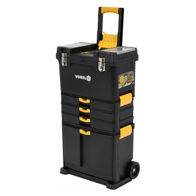 Produkto aprašymas 3 segmentų mobilus vežimėlis smulkiems įrankiams ir priedams laikyti. pagamintas iš atsparaus pažeidimams ir įbrėžimams plastiko daugybė skyrių leidžia atskirti skirtingus elementus vienus nuo kitų ir palaikyti tvarką tvirtos tvirtinimo detalės apsaugo dėžutes ir organizatorius nuo nepageidaujamo atidarymo Parametrai Dydis [cm]: Elementų skaičius [vnt.]: 45 x 28 x 82/104 Elementų skaičius [vnt: 3