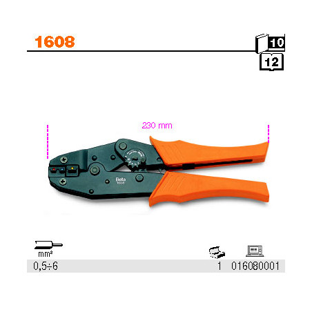 Užspaudžiamų kabelių antgalių užspaudimo replės Beta 1608 Ilgis (mm): 230 Užspaudimo plotas (mm2): 0,5÷6