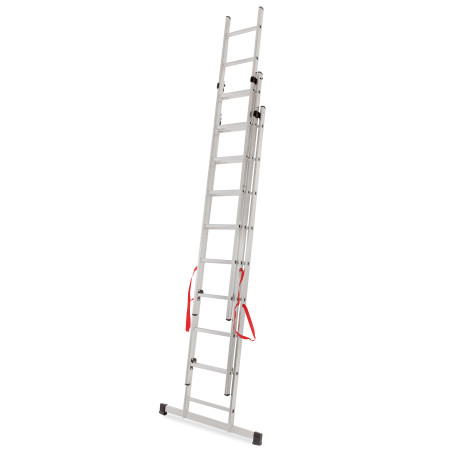 Neslystančios kojelės užtikrina gerą sukibimą. Platus stabilizatoriaus strypas užtikrina maksimalų stabilumą. Lengva pernešti ir transportuoti. Idealiai tinka renovacijos ir statybos darbams. Pagaminta Lenkijoje. Techniniai duomenys: Pakopų skaičius: 3x11 Keliamoji galia: 150 kg Laisvai pastatomų kopėčių aukštis: 2,9 m. 2,9 m Išskleidžiamųjų kopėčių aukštis: 4,8 m 4,8 m Pailginamųjų kopėčių aukštis: 6,6m Svoris: 15,6kg Kopėčios buitiniam naudojimui.
