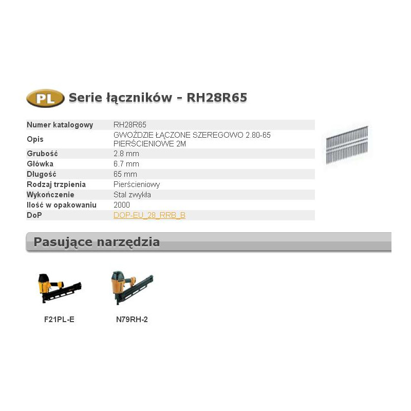 RH28R65 BOSTITCH NUTS RH 21` 65mm RING 2M ...