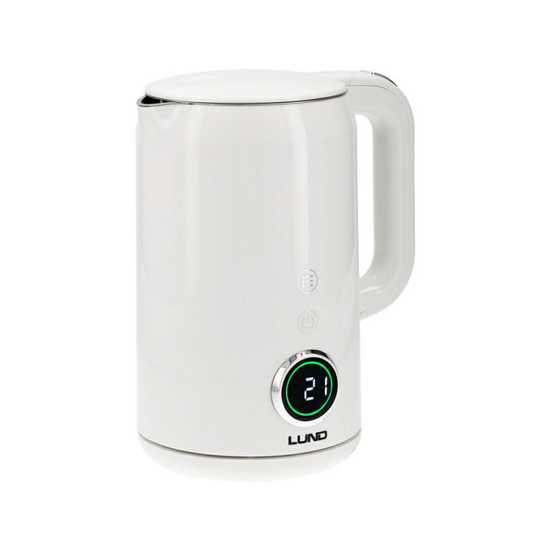 Produkto aprašymas LUND elektrinis virdulys - tai funkcionalumo, paprasto dizaino ir praktiškų sprendimų derinys. Jis puikiai tinka namų virtuvei, nes palengvina kasdienį karštų gėrimų ir patiekalų ruošimą. 1,7 l talpos virdulyje galite išvirti pakankamai vandens arbatai ar kavai visai šeimai. Skaitmeninis LED ekranas rodo esamą vandens temperatūrą jam įkaitus. Be to, skirtingomis spalvomis rodomas apvadas, atitinkantis vandens pasiektus Celsijaus laipsnius. Kai vanduo įkaista iki pasirinktos vertės, pasigirsta švelnus pyptelėjimas, o LED apvadas tampa baltas. Po minutės virdulys automatiškai išjungia kaitinimą ir pereina į budėjimo režimą.
